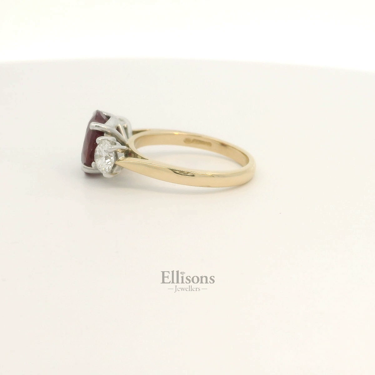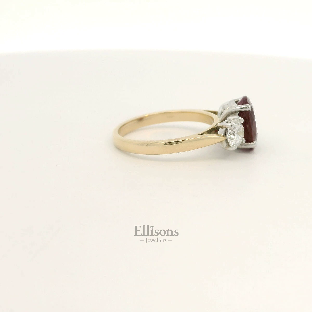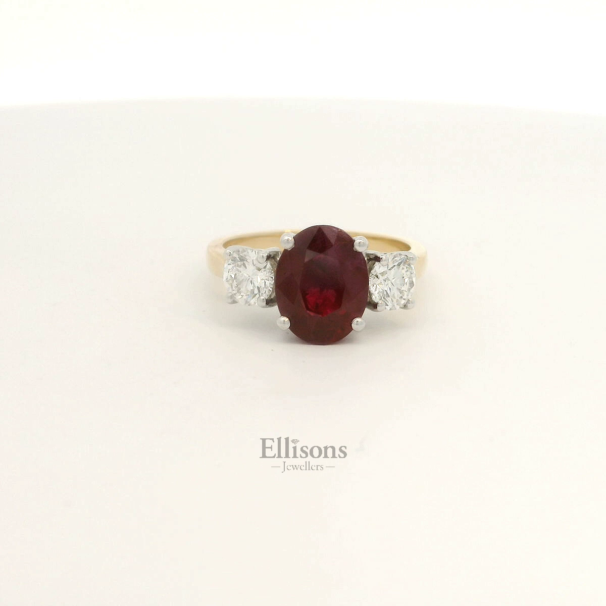 18ct Gold Platinum Oval 3.07ct Ruby and Diamond Trilogy ring