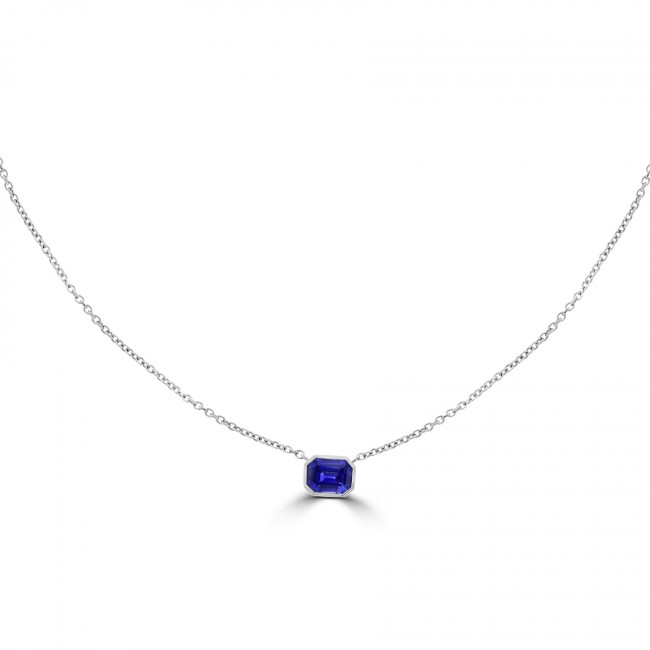 18ct White Gold Emerald cut 1.25ct Sapphire Pendant Chain