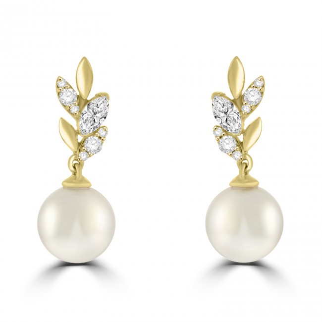 18ct Gold Akoya Pearl and Diamond Petal Drop Earrings