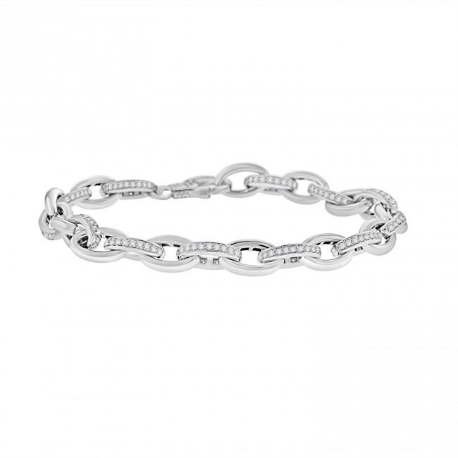 Solid and silky white gold, oval links alternate with grain set diamond versions in an understated yet stunning bracelet.