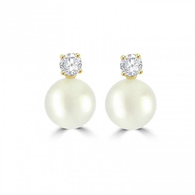 The unparalleled lustre of the cultured Akoya pearl is contrasted with diamond brilliance within these beautifully elegant, stud earrings. A .15ct round brilliant cut Diamond is claw set in 18ct yellow gold, with a uniform round pearl fixed below. The Akoyas measures 8-8.5mm and are perfectly matched in refined quality.