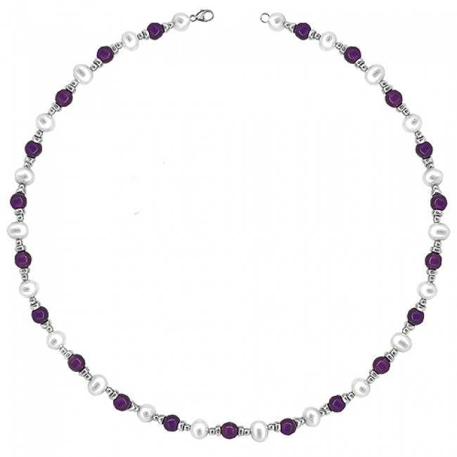 • Sterling silver Amethyst and Freshwater Pearl Necklet
