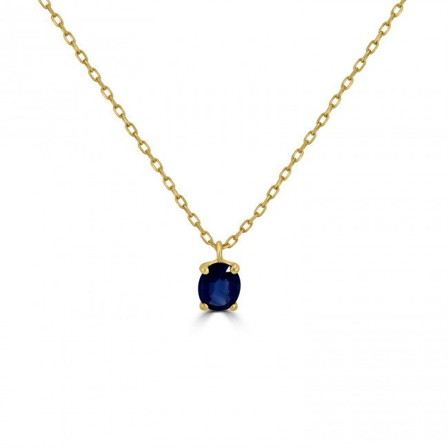 Deep royal blue colour tones radiate from this oval Blue Sapphire. Set in an understated claw setting and fitted subtely to an 18" belcher trace chain.