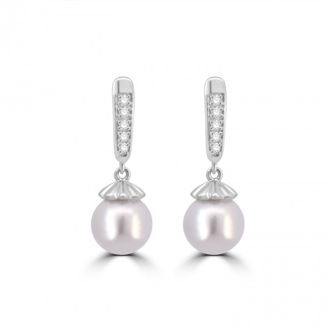 9ct White Gold Freshwater Pearl and Diamond drop earrings