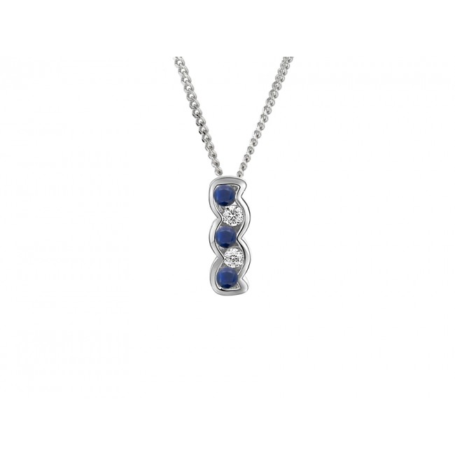 • 9ct White Gold Diamond and Sapphire Wave Pendant