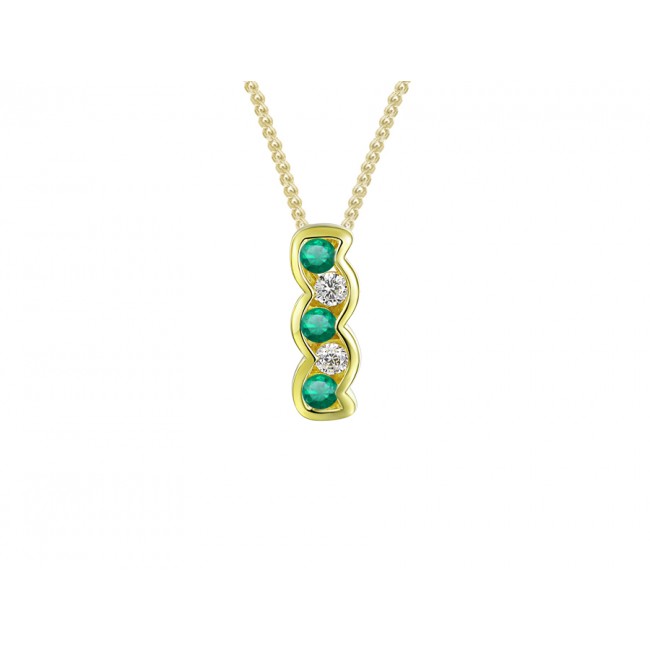 9ct Yellow gold Diamond and Emerald wave pendant