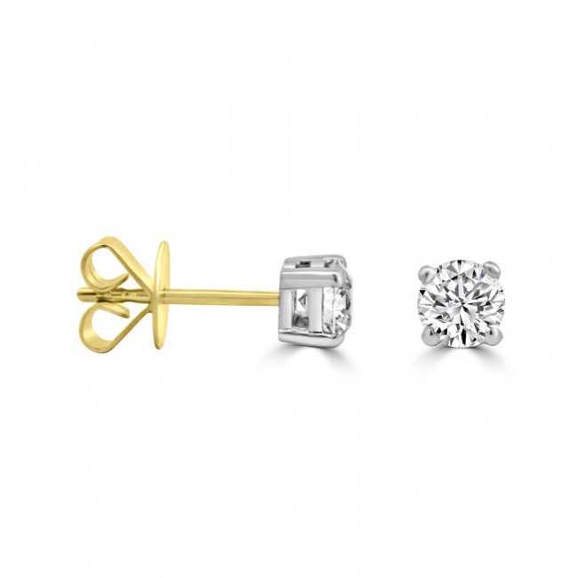 18ct Gold Platinum Solitaire DSi2 Diamond stud earrings