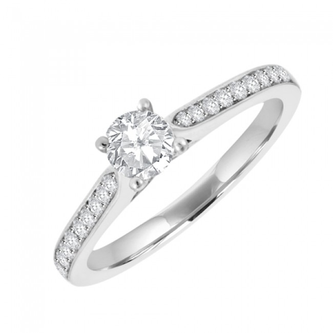 • Platinum Diamond Solitaire Ring with micro claw set shoulders