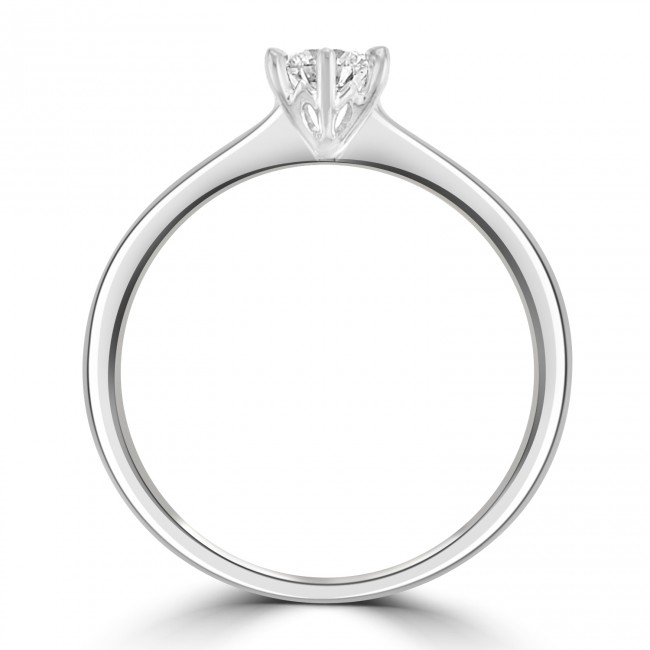 This fine quality, brilliant cut is accompanied with GIA Certification (D colour, Si1 clarity, Excellent cut, Excellent symmetry, Excellent polish). Mounted in a platinum 6-claw setting with a sleek and tapered shank.