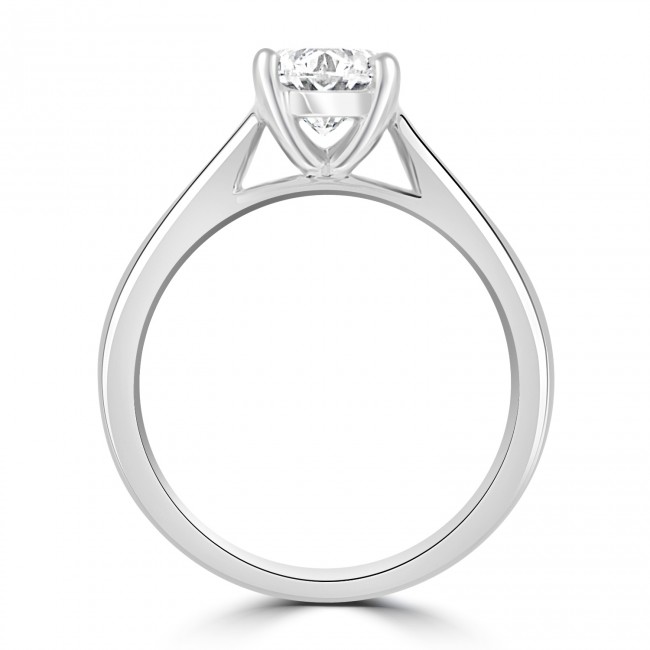 This handpicked Oval is literally stunning - a viewing is recommended! Beautifully proportioned and certified by GIA (D colour, Si2 clarity, Excellent Polish, Very Good Symmetry, Fluorescence None). The setting is understated and made in luxurious Platinum.