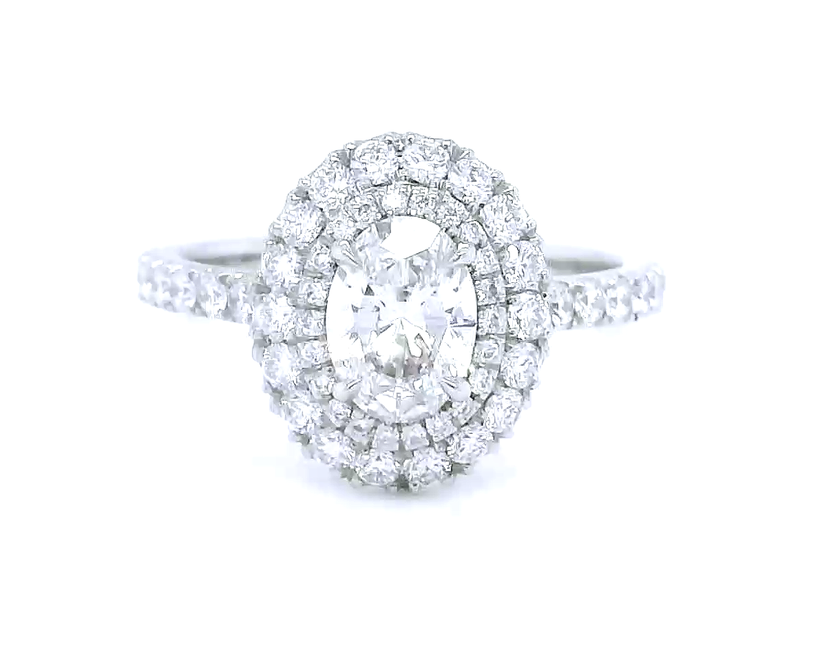 Platinum FSi1 Oval Double Halo Diamond Ring
