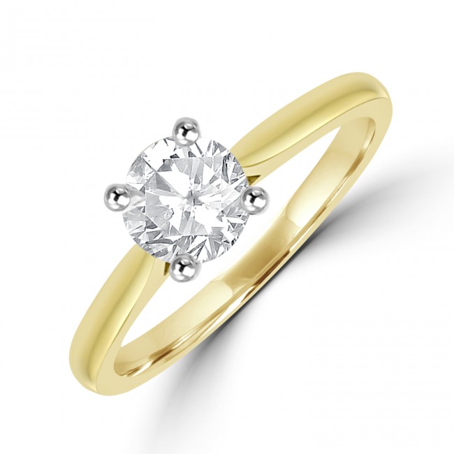 A stunning Brilliant cut Diamond radiates fine quality to match its GIA certification from within a white claw setting that contrasts beautifully with its yellow gold shank. Traditional, yet timeless!