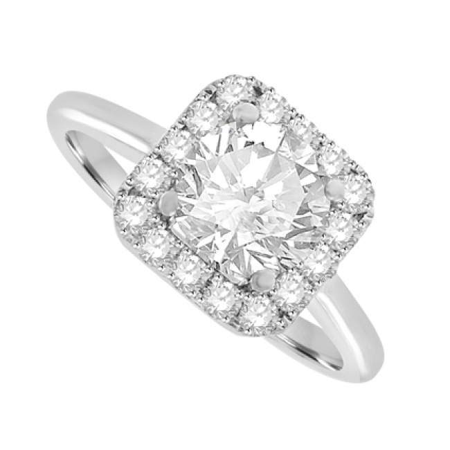 • 18ct White Gold Diamond Solitaire Cushion Halo Ring
