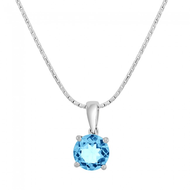 • 9ct White Gold Round Blue Topaz Pendant
