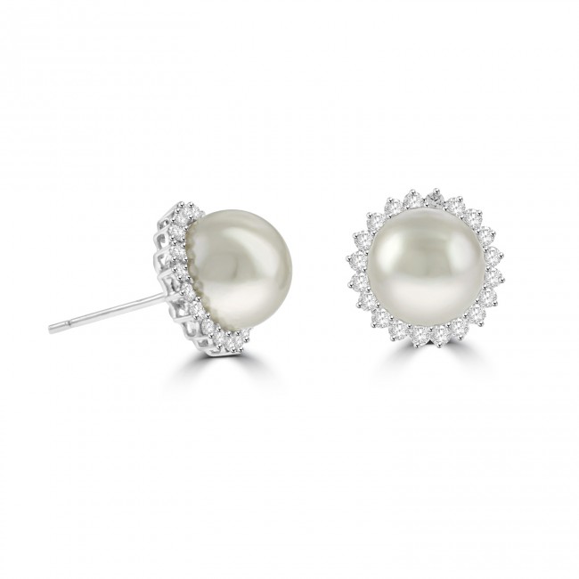 18ct White Gold South Sea Pearl and Diamond stud earrings
