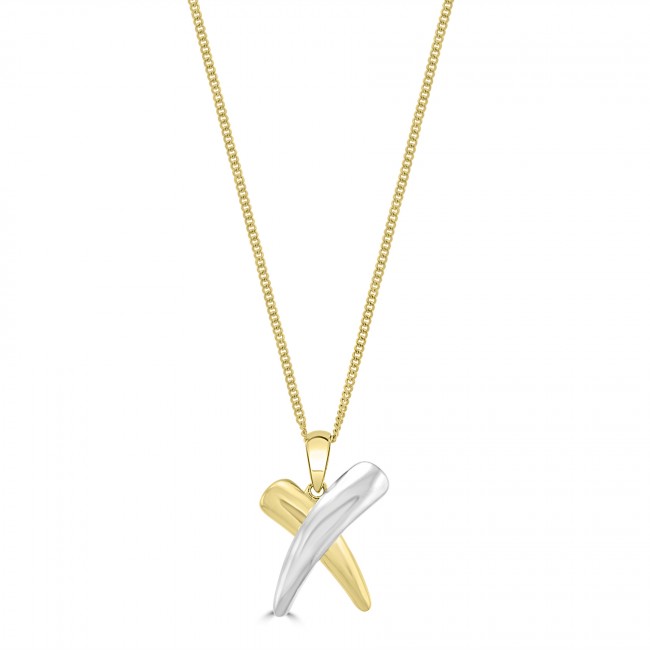 A simple yet effective design, featuring two curved, rounded and tapered bars that overlap in an "X" shape and contrast silky white gold with majestic yellow gold tones. The drop is fitted to a plain yellow bale. PLEASE NOTE: Sale price represents Pendant only; Chain sold separately.