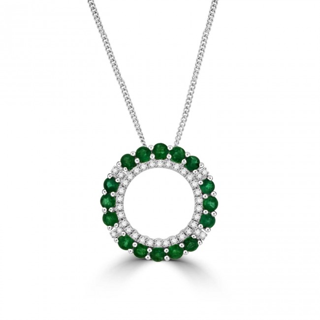 18ct White Gold Emerald and Diamond Circle of Life pendant