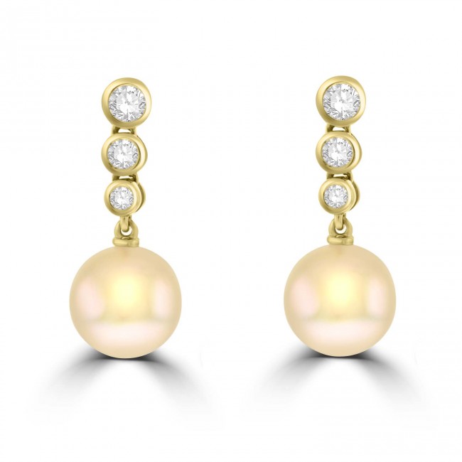 • 18ct Gold Cultured Pearl Diamond Drop Earringss