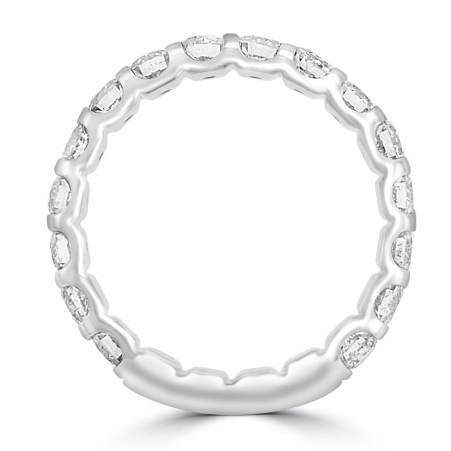 This heavy set D-shaped band is frilled with castle settings that allow optimum light to radiate through sixteen brilliant cut diamonds. Four segments are solid to allow for sizing. The finish is impressively smooth and flush despite boasting an impressive 1.90ct Diamond weight.