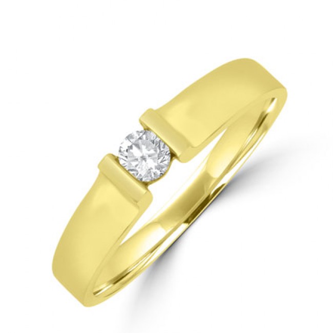 The warm, majestic tones of 18ct yellow gold contrasts effectively with the fire and brilliance of an inset diamond.