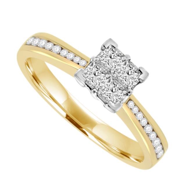18ct Gold Princess cut Diamond Quad Cluster Ring