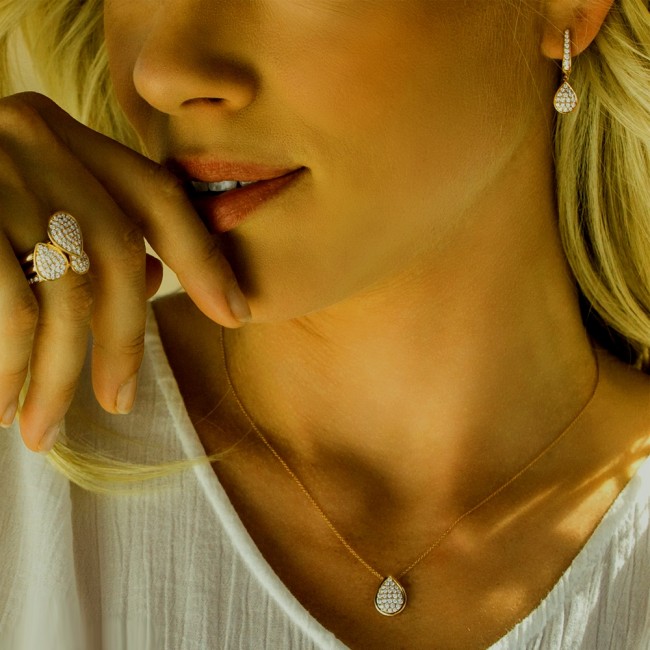 18ct Gold and pave Diamond Drop earrings by Hulchi Belluni