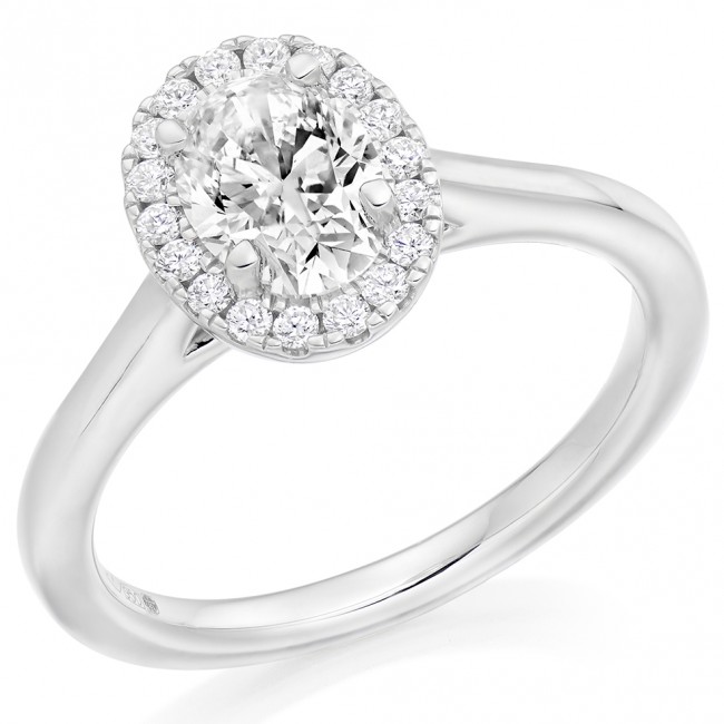 • Platinum Oval DSi1 Diamond Halo ring