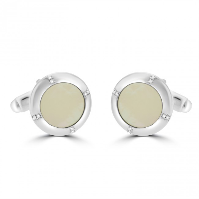 • Sterling Silver Mother of Pearl and Cubic Zirconia Cufflinks