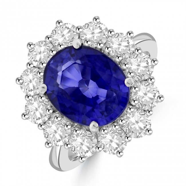 Platinum Oval 5.47ct Sapphire and Diamond Cluster ring