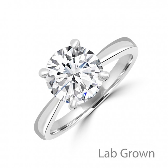Stunning lab-grown Diamond weighing an impressive 1.70ct and certified by IGI (E colour, VVS2 clarity, Excellent Cut/Polish/Symmetry, Fluorescence None). Mounted in an understated Platinum setting with open side profile to allow optimum light to radiate through the stone and accentuate the dazzling brilliance.