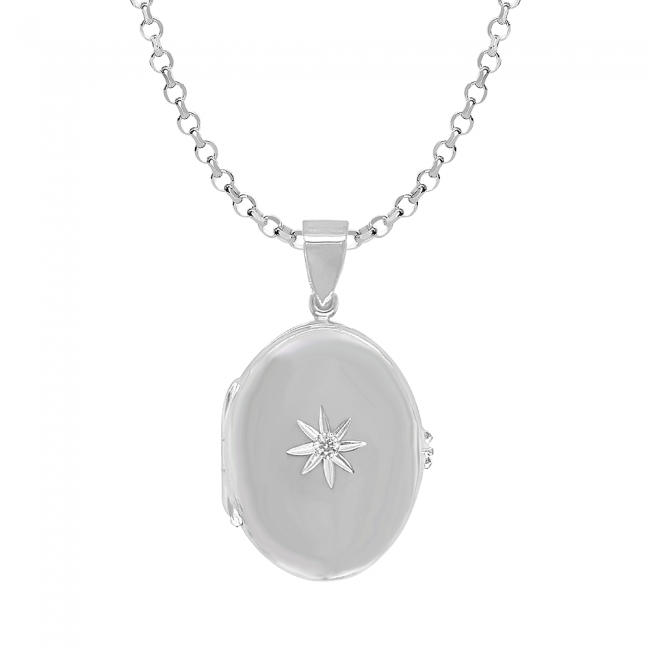 • Sterling Silver Oval Star set Locket Pendant Chain