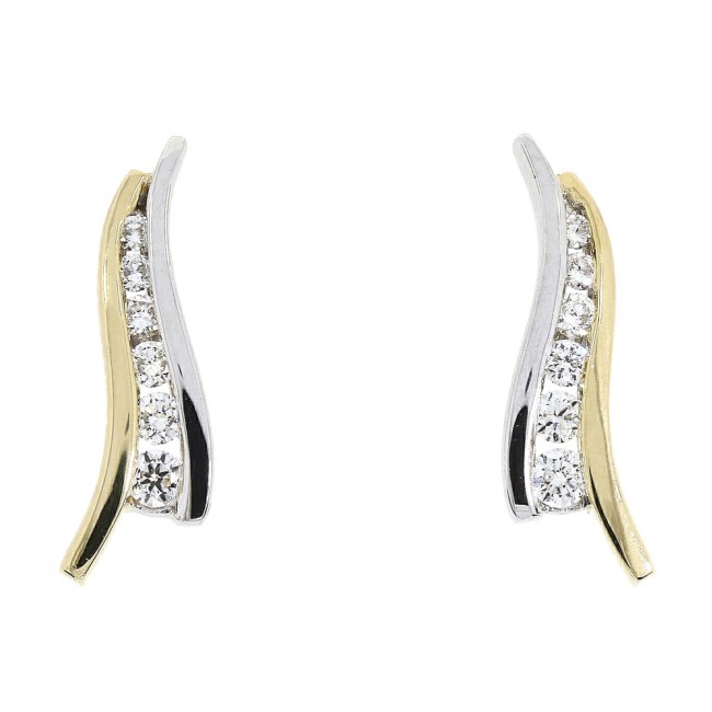 18ct Two-Tone Gold Diamond Wave stud earrings