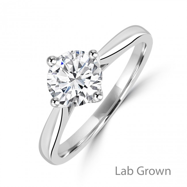 Round, Brilliant cut Lab-Grown Diamond set in a 4-claw compass style setting, wedding ring friendly, in 9ct white gold.