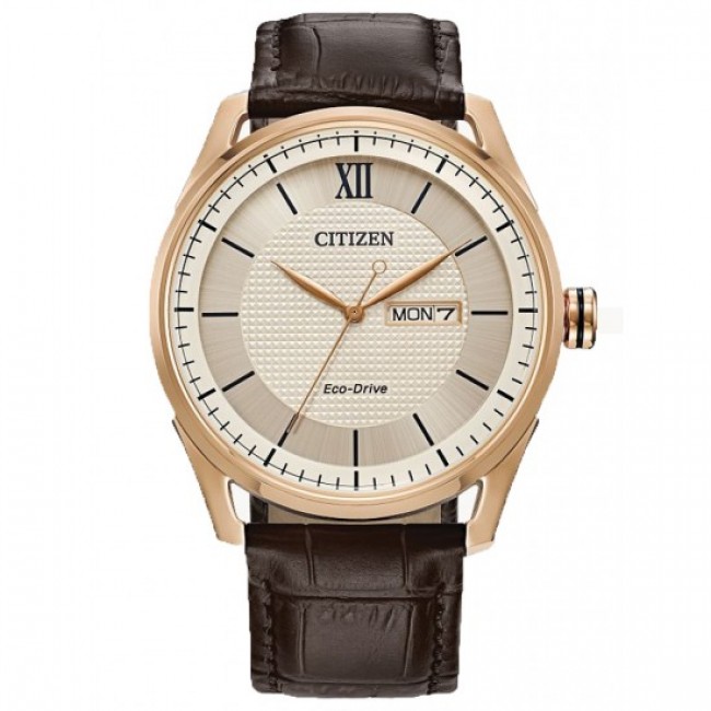 Citizen Eco-Drive Rose Gold Brown Strap Watch