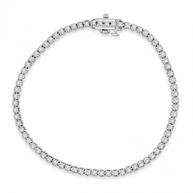 Seventy-four brilliant cut diamonds are individually claw set in silky white gold. The Tennis bracelet is fitted with an integrated box clasp and safety latch.