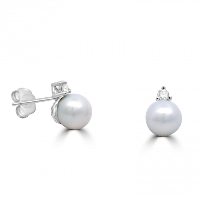 9ct White Gold Diamond Pearl stud earrings