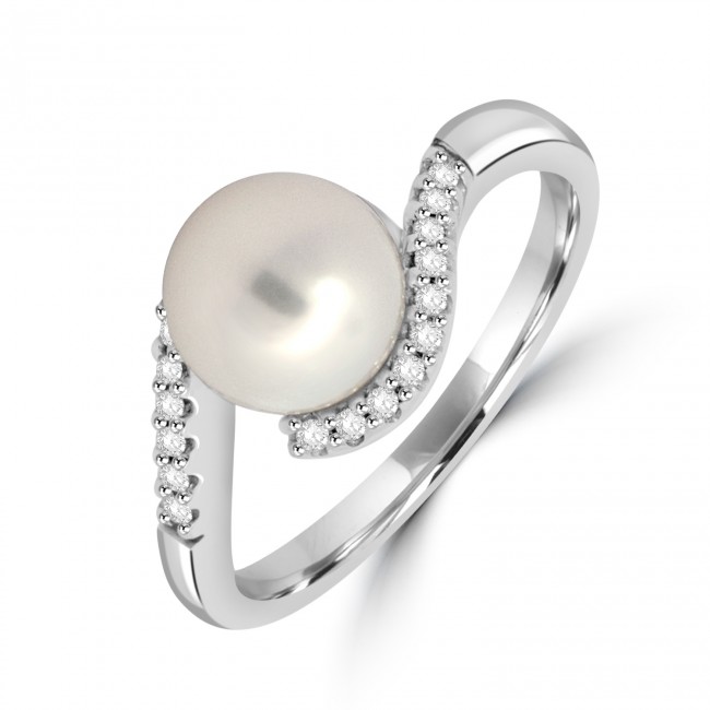 9ct White Gold Freshwater Pearl Diamond swirl ring