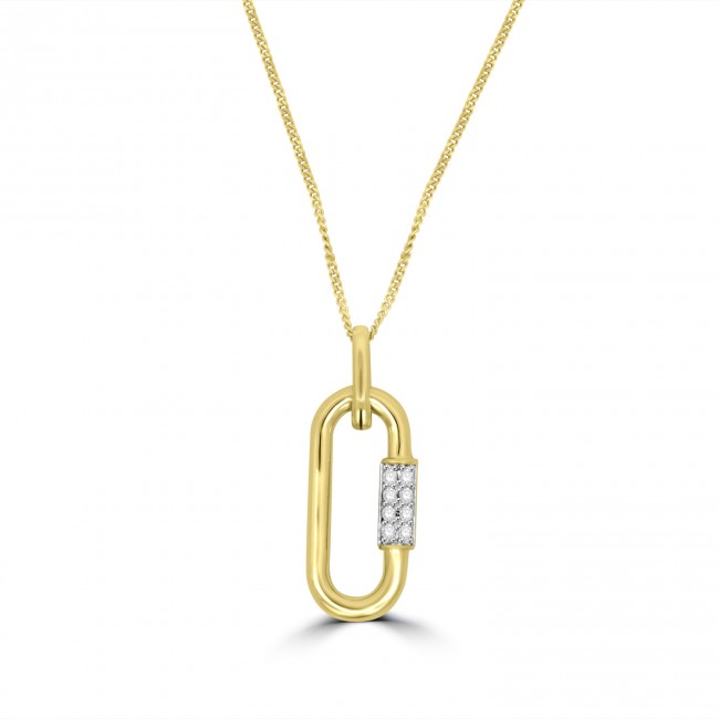 Fashion on trend, this paperlink shaped pendant features a glistening segment of white cubic zirconia. Fitted to a 9ct yellow gold trace chain.