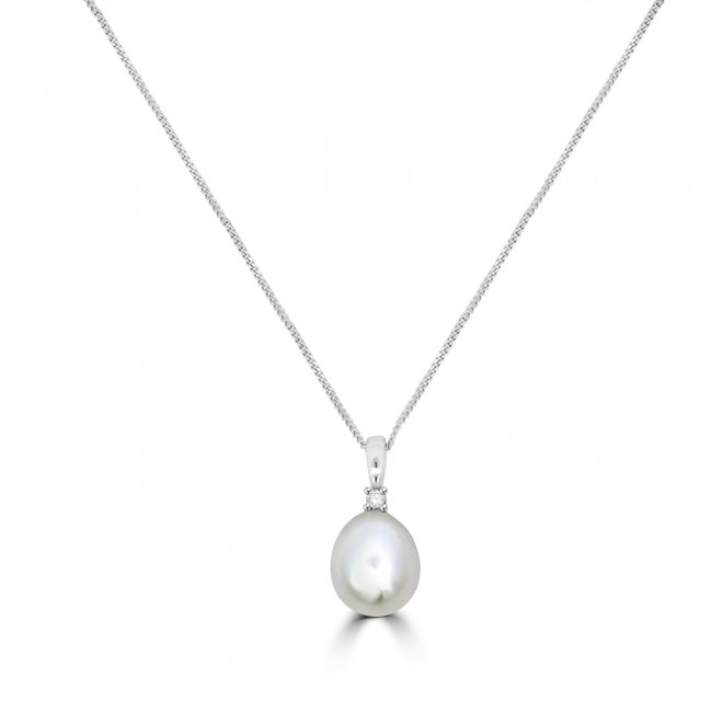 9ct White Gold Freshwater Pearl Diamond pendant chain