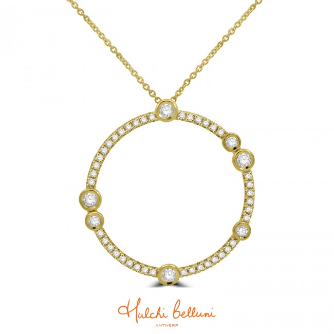 18ct Yellow Gold Diamond Bouli Circle Pendant chain
