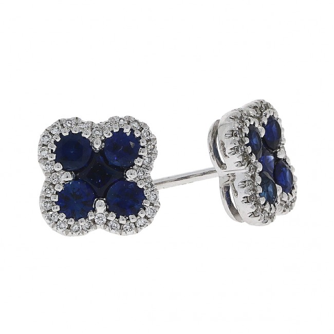 18ct White Gold Sapphire and Diamond Clover stud earrings