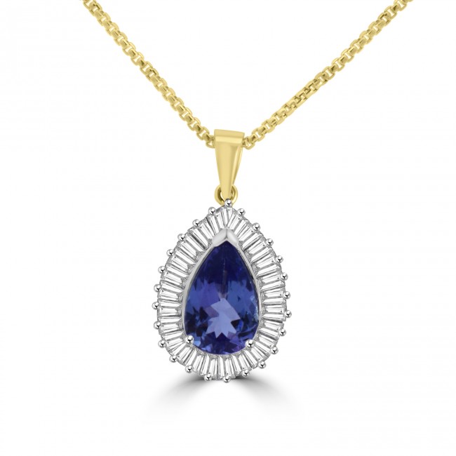 18ct Gold Pear Tanzanite and Diamond Baguette pendant