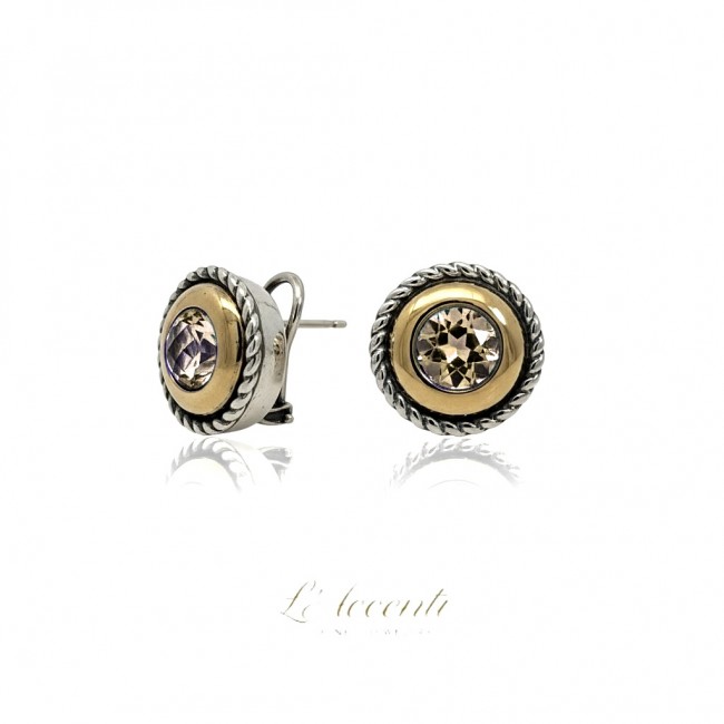 Beautiful Italian design and manufacture radiate from these stud earrings. A round cut Citrine is complemented in the rich tones of an 18ct yellow gold surround, which contrasts with a rope twist effect in sterling silver. The earrings are fitted by a hinger pincer back and stem.