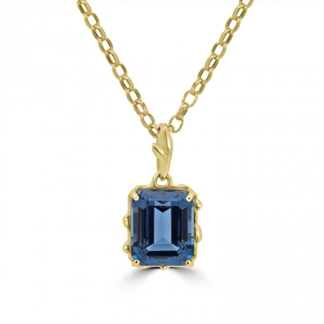 • 9ct Gold London Blue Topaz emerald cut pendant