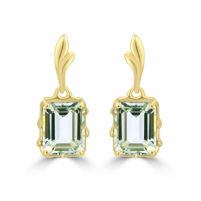 • 9ct Gold Green Amethyst emerald cut drop earrings