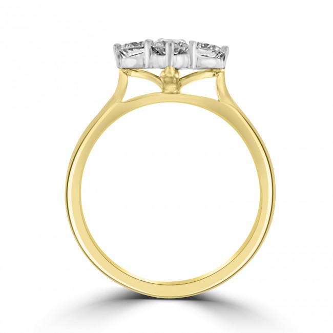 Discover the epitome of grace with this exquisite gold diamond ring. Its timeless design and four, brilliant cut diamonds are sure to captivate, offering a delicate balance of sophistication and splendor. Our traditional and ever-popular 4-stone cluster ring has been slightly raised so as to allow a wedding band to sit underneath the setting and parallel to the shank. Featuring .77ct Diamond in dazzling brilliant cuts.