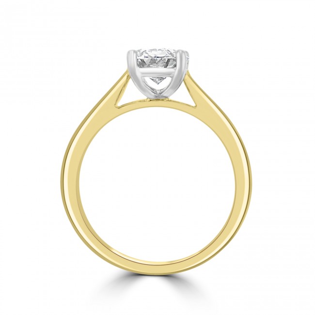 A fine diamond, handpicked for its stunning aesthetics; a viewing highly recommended! Mounted within Platinum claws, tapering to a sleek point and contrasting with the warm, rich tones of the 18ct yellow gold shank. Oval cut 1.50ct Diamond ~ GIA Report 1236206610 Certifed E colour ~ Si2 clarity ~ Excellent Polish/Symmetry ~ Fluorescence None