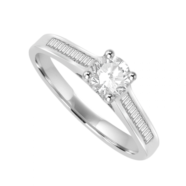 18ct White Gold Diamond Solitaire ring with Baguette Shoulders