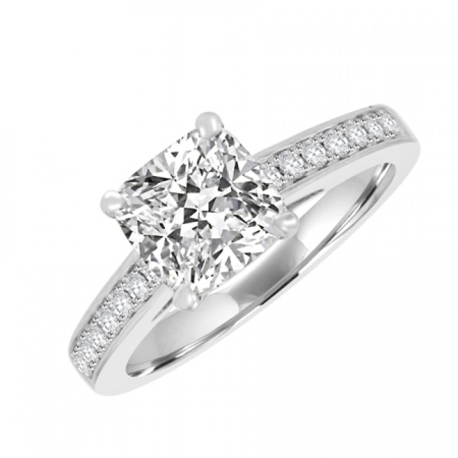 • Platinum Solitaire Cushion Diamond Ring Stone Shoulders