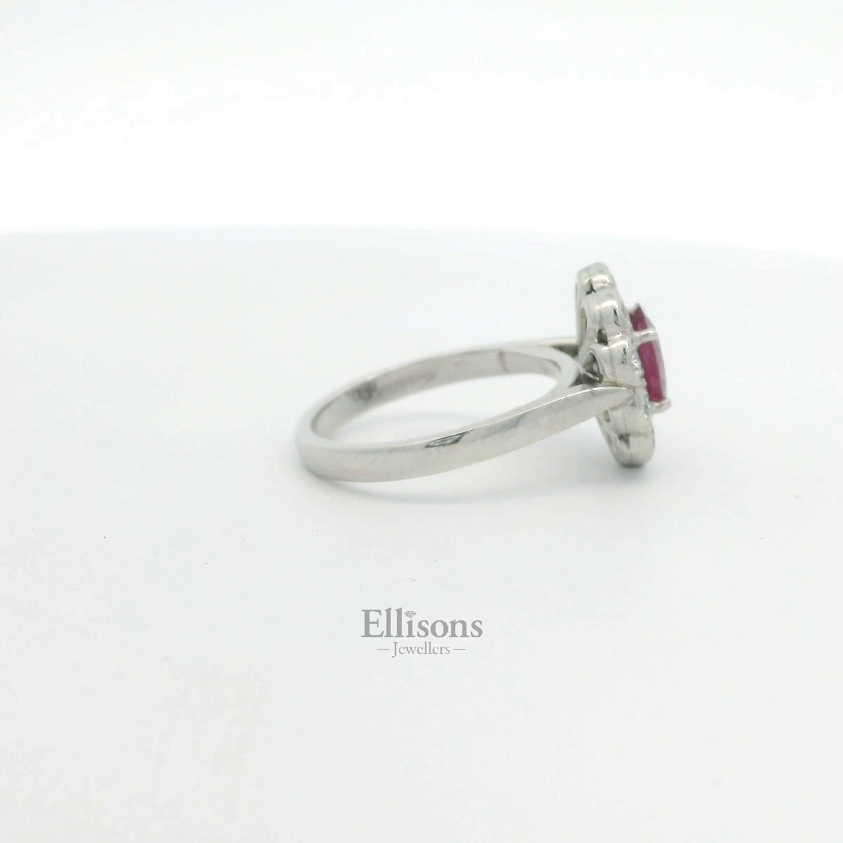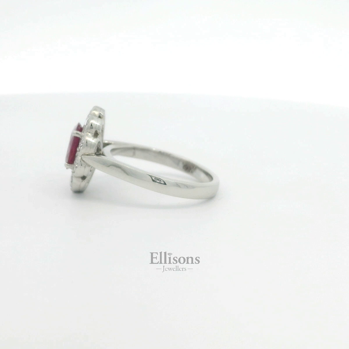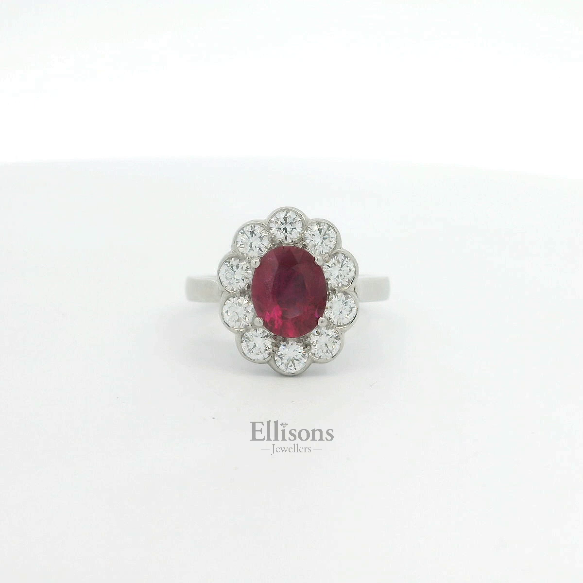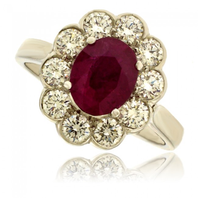 Platinum Oval Ruby and Diamond Cluster Ring
